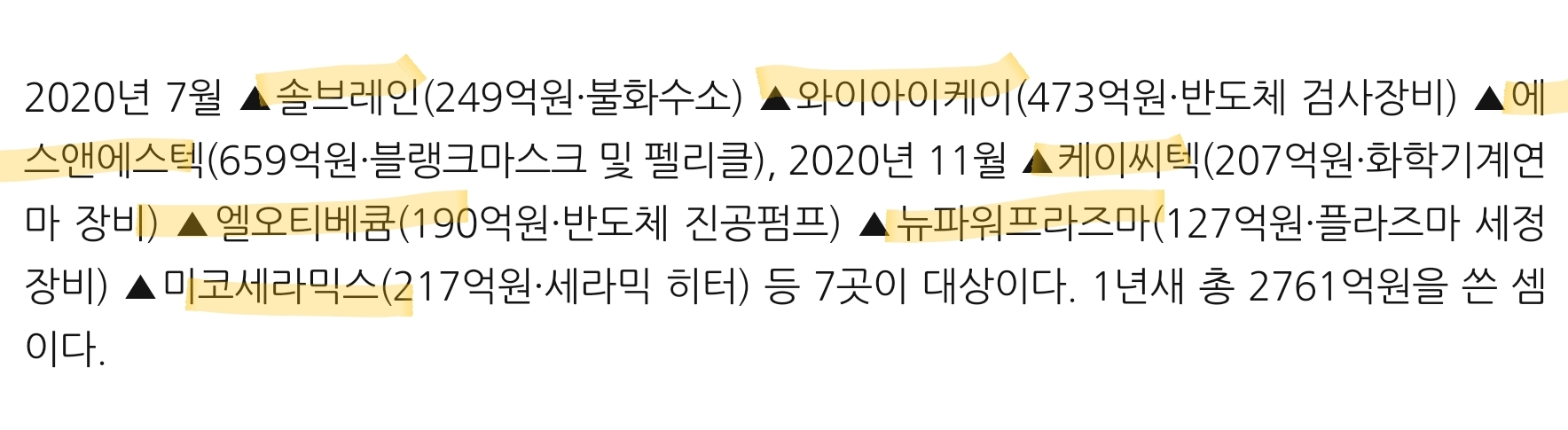 위의 반도체 소부장 관심주들은 언제든 삼성의 재투자를 받을 수 있기에