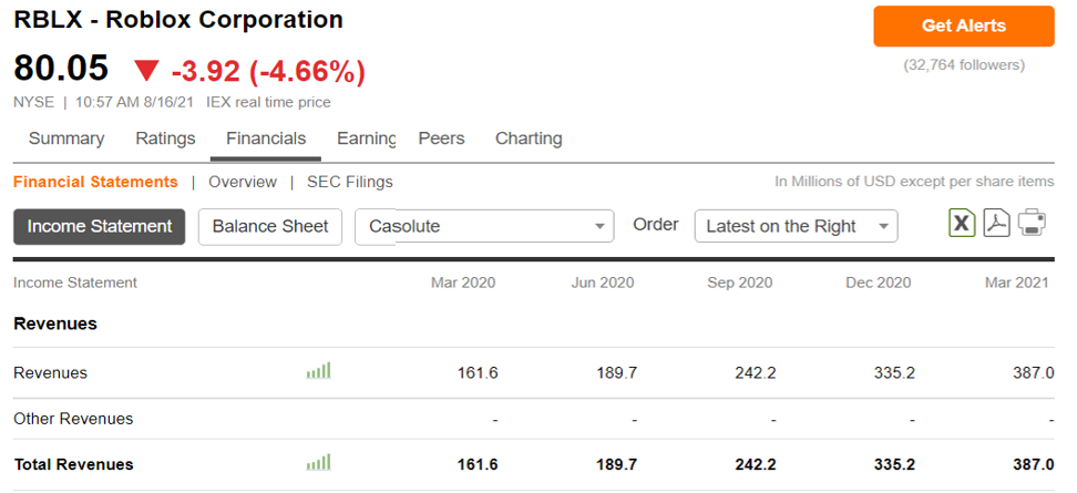 참고로 위 숫자가 로블록스의 지난 5개분기 매출현황