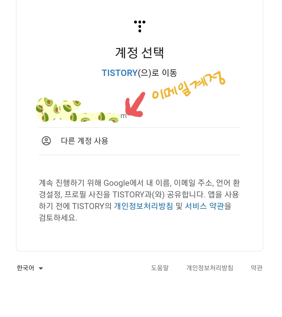 해당계정이 티스토리와 연결된 계정이 맞는지만 확인하면 됩니다
