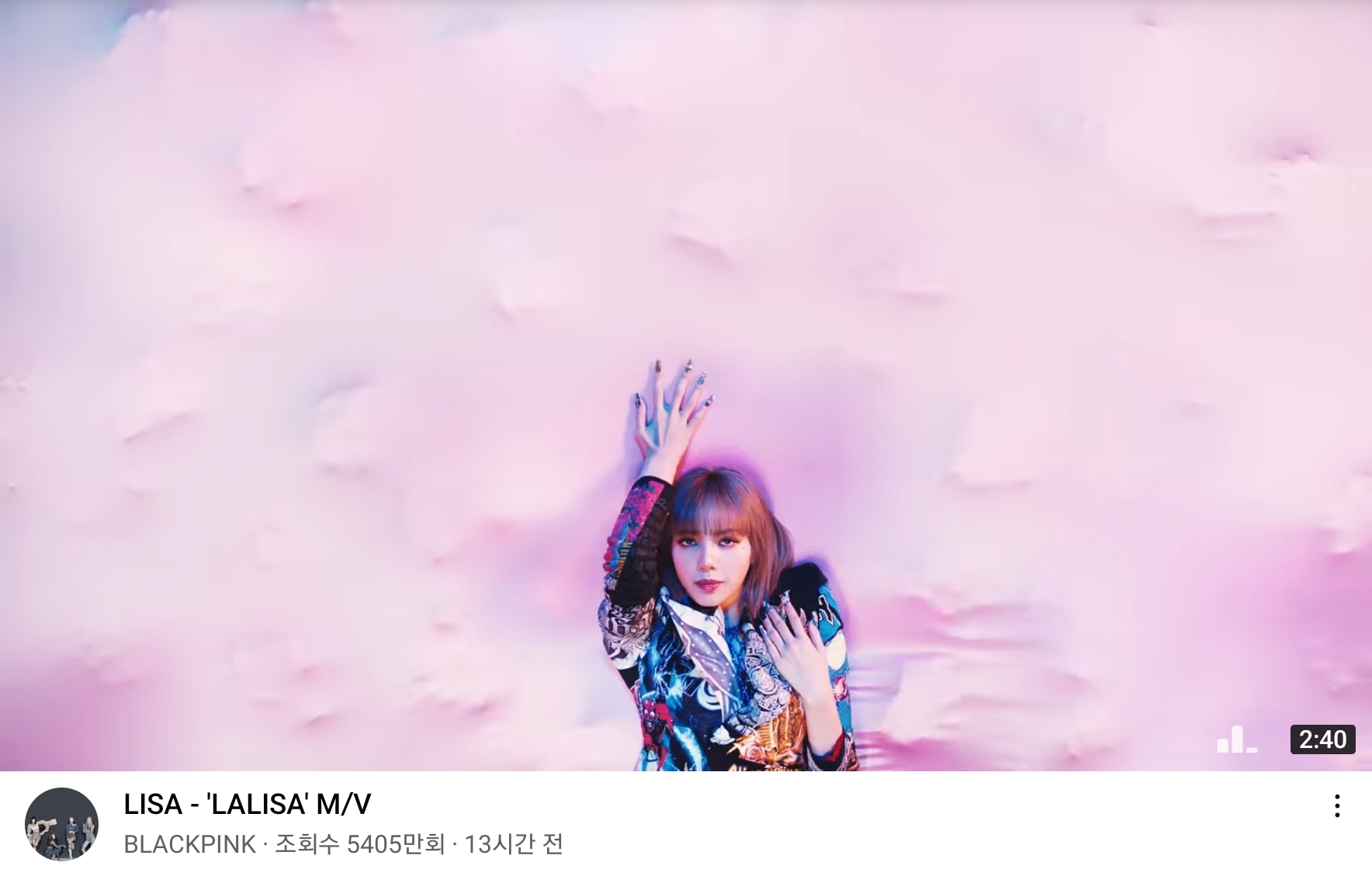 LISA 의 #LALISA 뮤직비디오이며, 현재 시간 9월11일 새벽 2시반 기준으로 약 5400만의 조횟수를 기록하고 있습니다