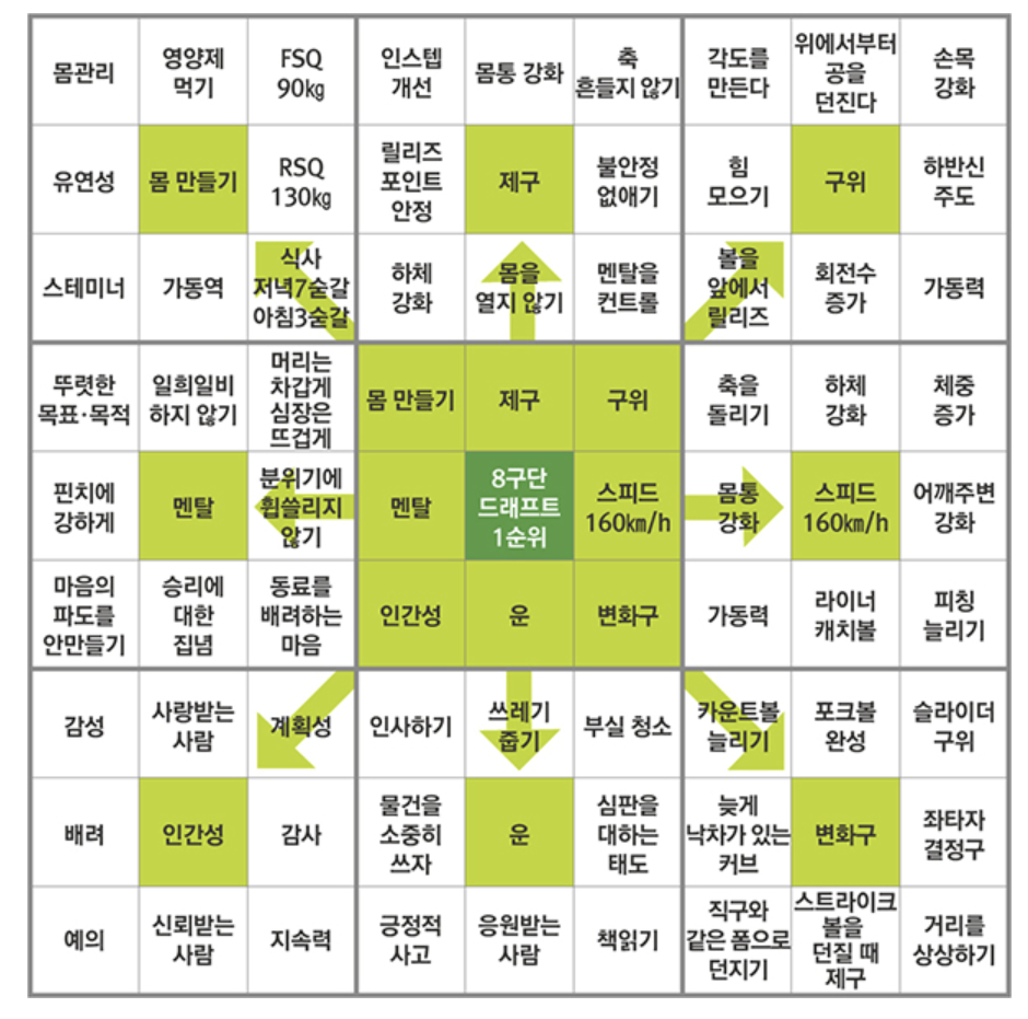 만다라트는 가운데 핵심 목표를 쓰고