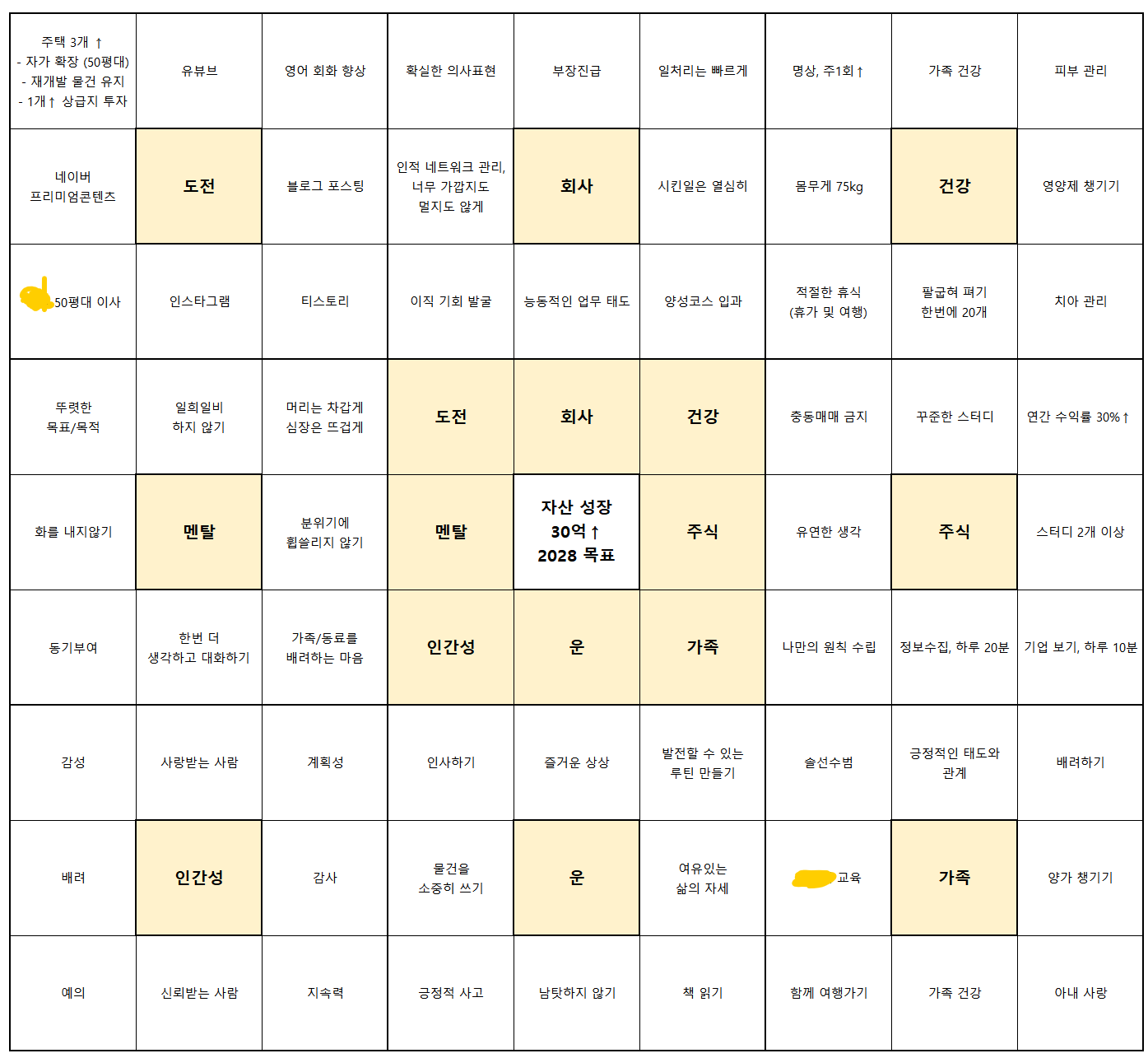 그래서 나도 만다라트를 만들어 보았고