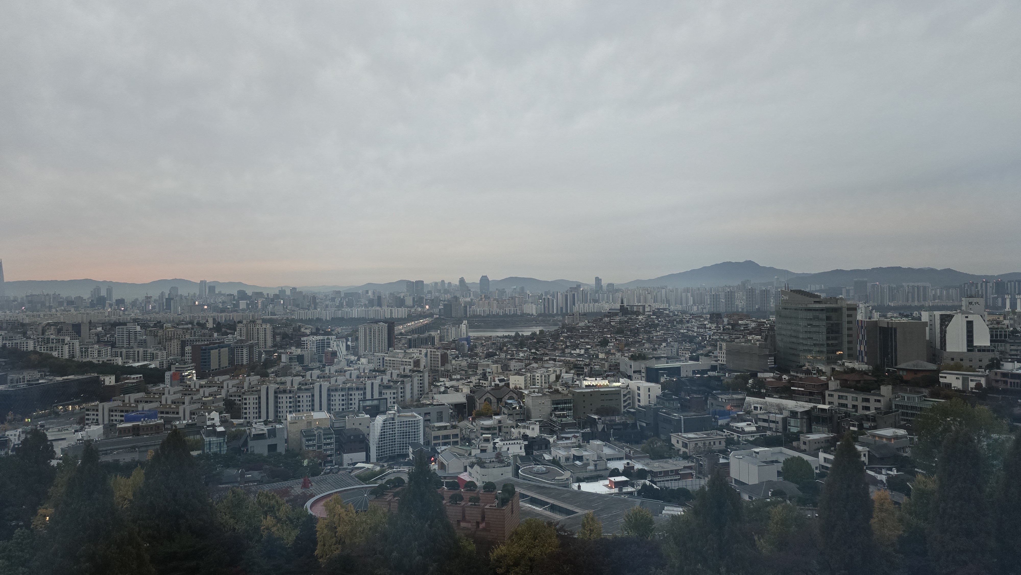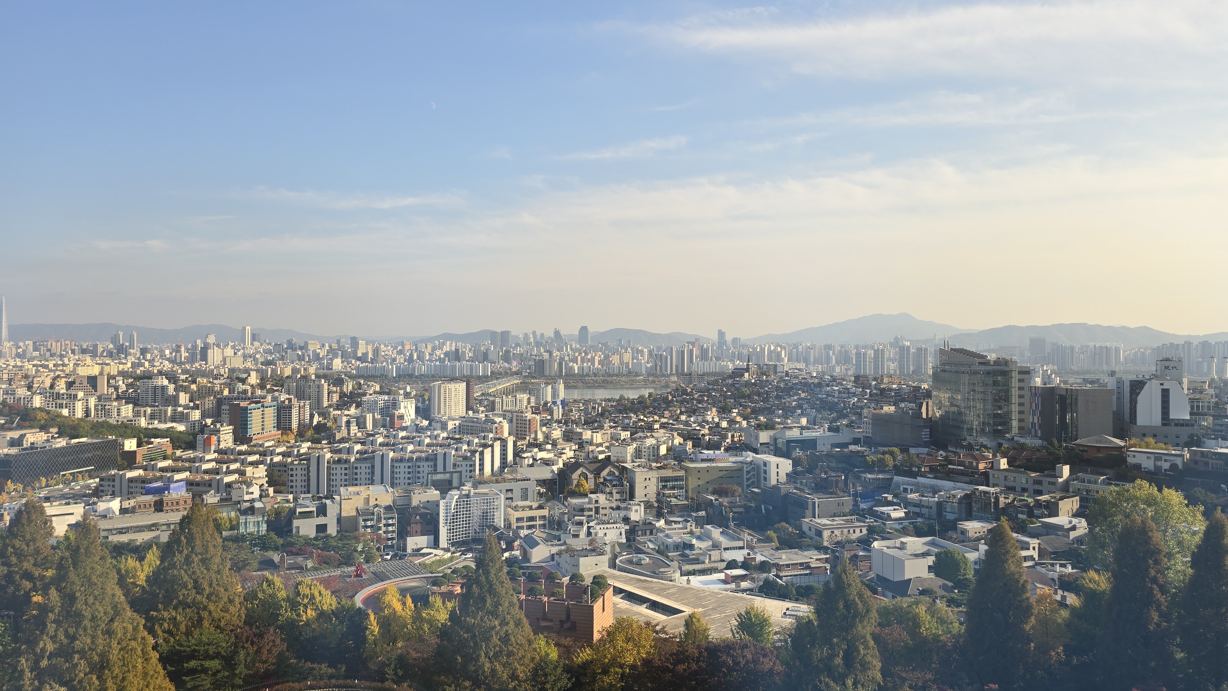 저 멀리 한강이 보이고