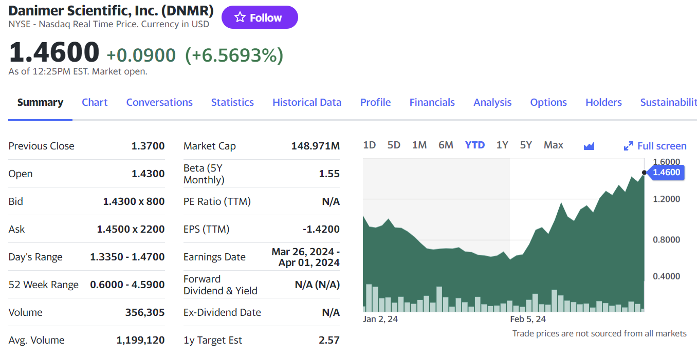 현재 Danimer Scientific의 시가총액은 약 $149M